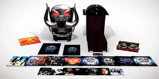 Band heavy metal legendaris, Motorhead menyiapkan sebuah kejutan untuk fansnya berupa box set yang sungguh memukau. Bentuk box set ini didesain maskot Motorhead, Snaggletooth berwarna silver dengan mata yang bisa menyala merah. Di dalamnya berisikan 16 CD yang diambil dari album terbaiknya. Box set ini pastinya tak boleh dilewatkan bagi penggemar metal manapun.