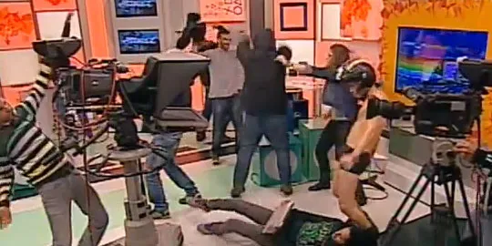 Harlem Shake tak mengenal tempat dan waktu, kapanpun bisa dilakukan. Seperti halnya stasiun televisi di Portugal ini yang terjangkit Harlem Shake di tengah siaran.