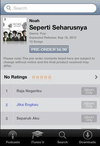 Menyiasati penjualan album yang tengah lesu, NOAHÂ juga menjual lagunya melalui ITunes. Melalui cara ini diharapkan penggemarnya bisa mudah untuk mendapatkannya. Dengan USD6.90 atau sekitar Rp60.000 para Sahabat (julukan fans NOAH) yang menggunakan Apple bisa pre order album ini.