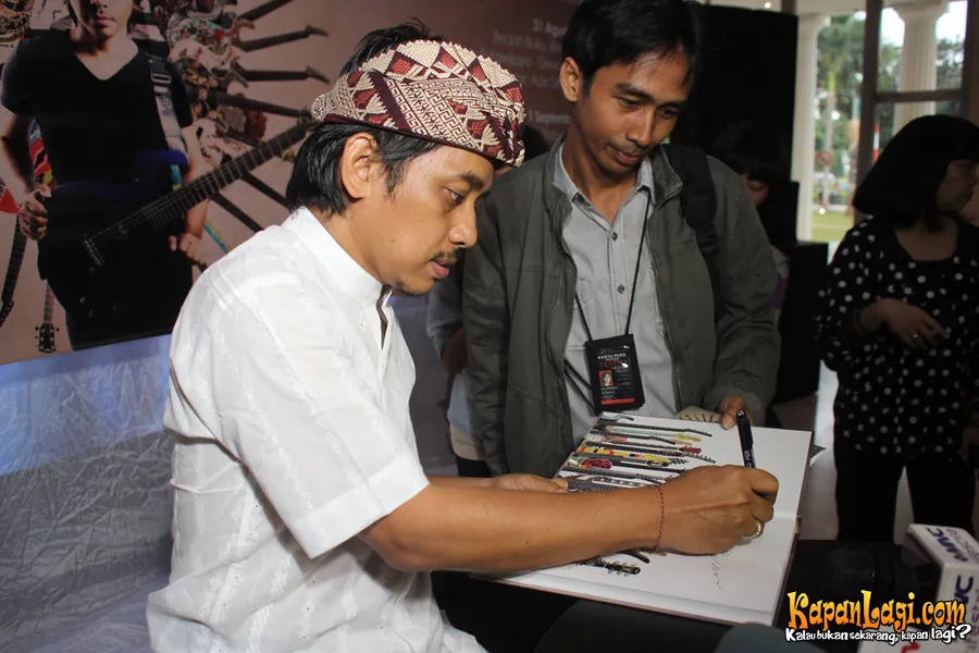 "Karena sekarang saya sering pakai gitar ukir, jadinya ciri khas saya. Malah lama-lama jadi ada yang terasa hilang kalau tanpa ada lukisan," tutur Budjana di Museum Nasional, Jakarta Pusat, Jumat (30/8) malam.