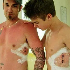 Tato inipun juga dibubuhkan di tubuh sang ayah, yakni tepat di bagian kiri sisi tubuh mereka, tepat di bawah ketiak. Beberapa foto dari TheJustinBieberShrine.com menunjukkan bahwa pelantun tembang Baby ini terlihat gugup ketika duduk di kursi tato, sebelum akhirnya sang ayah menggenggam tangannya selama proses pentatoan. Setelah selesai, Justin dan Jeremy pun berpose bersama, memamerkan tato baru mereka yang masih bengkak kemerahan.