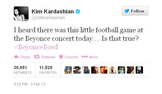 @KimKardashian: Aku dengar ada permainan football di konser Beyonce hari ini... Benarkah? #BeyonceBowl