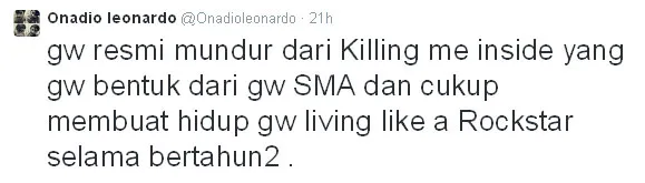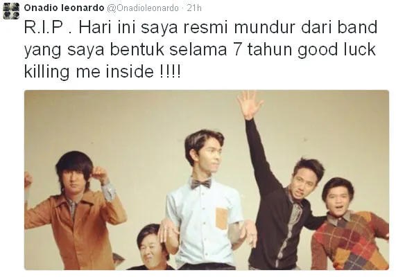 Onad secara resmi mengumumkan kabar buruk bagi fansnya melalui akun twitternya kemarin Rabu (10/11). Dia menuliskan, bahwa dengan pernyataan ini resmi sudah tidak menjadi bagian dari Killing Me Inside.