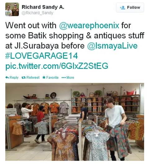 Sebelum tampil personel Phoenix memilih bersantai terlebih dahulu menikmati kota Jakarta. Mereka nampaknya memilih untuk berburu oleh-oleh dan akhirnya tujuannya adalah berburu batik di jalan Surabaya.