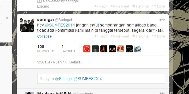 Seringai tentu saja meminta klarifikasi kepada akun acara yang bernama @Sumfes2014 itu. Pasalnya, band high octane rock ini tidak mendapat dan memberikan konfirmasi jika akan bermain acara tersebut.