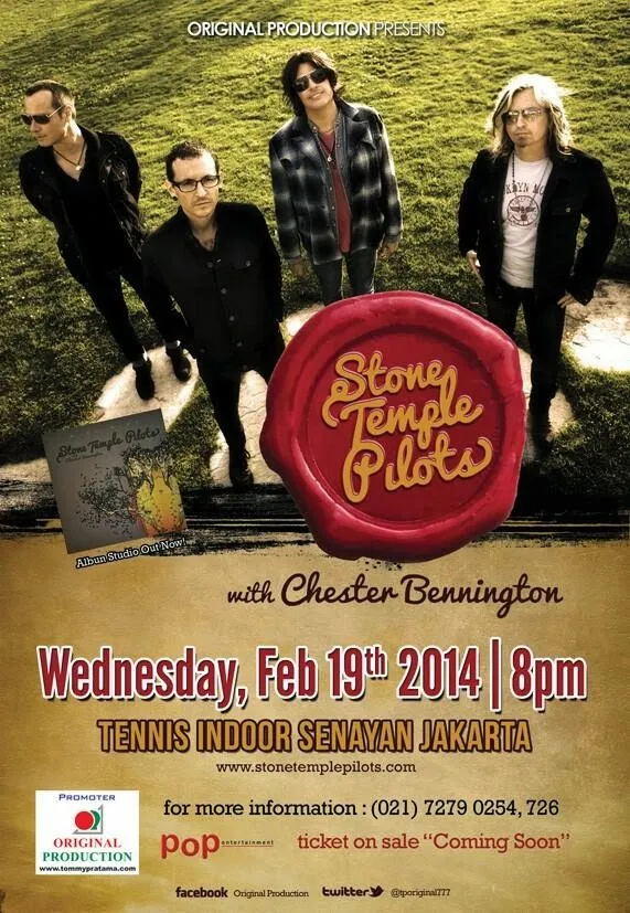 Rencananya Stone Temple Pilots dijadwalkan tampil pada 19 Februari di Indonesia. Konser yang dipromotori oleh Original Production ini akan digelar di Tennis Indoor Senayan.