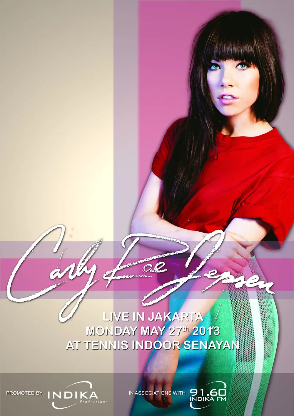 Kapanlagi.com - Gelaran Carly Rae Jepsen Live In Concert adalah panggung pertama Carly di Indonesia. Diboyong Indika Production, konser ini akan digelar pada 27 Mei 2013 di Tennis Indoor Senayan, Jakarta Pusat.